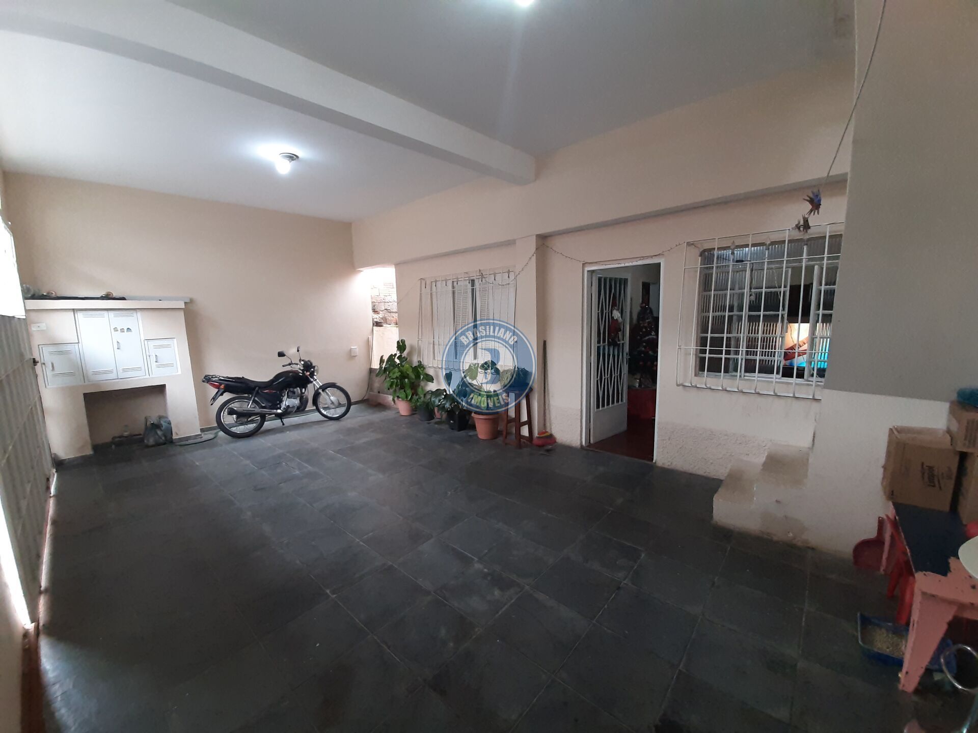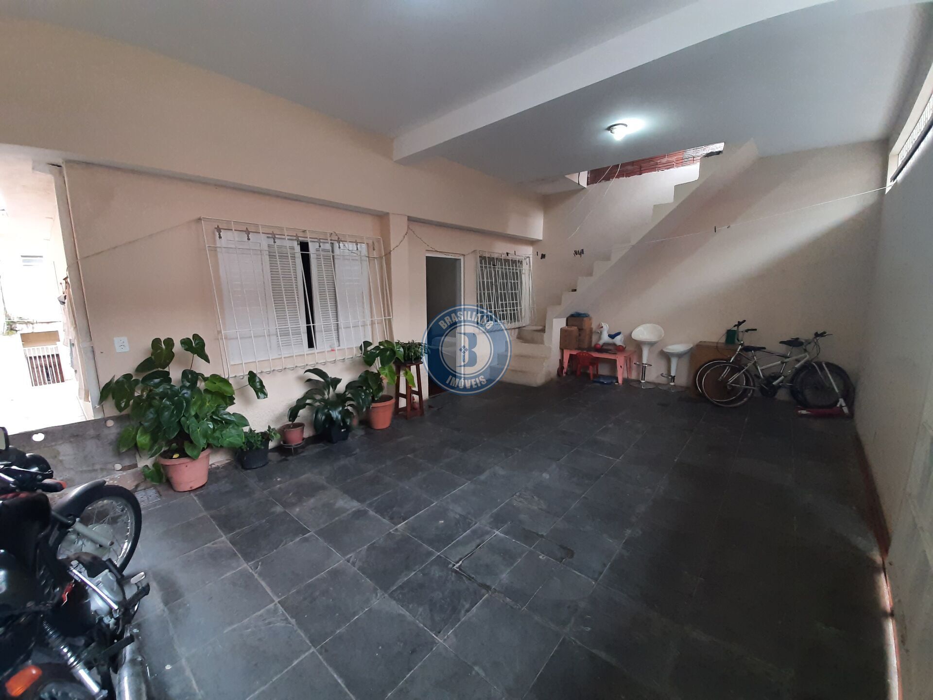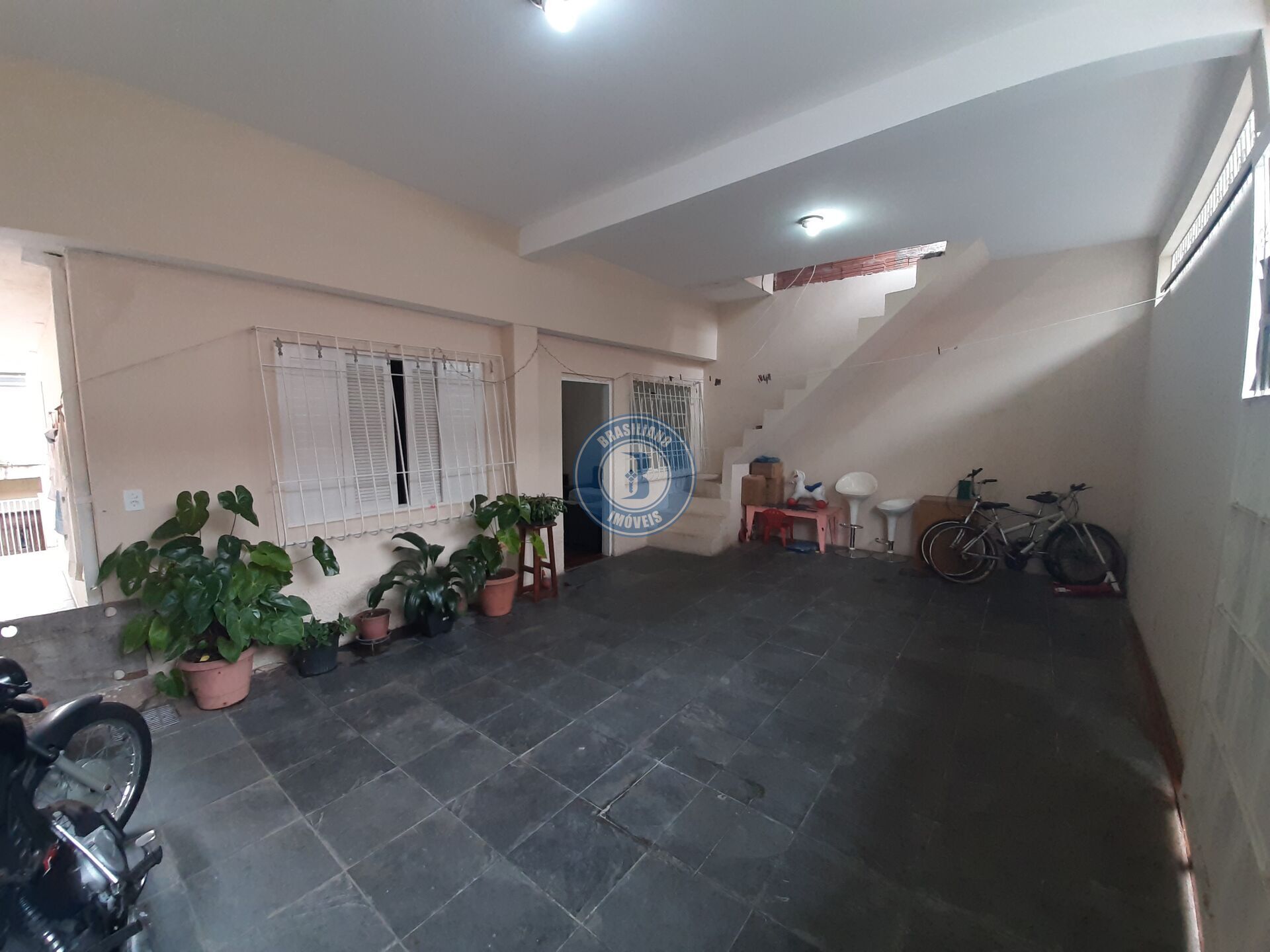 Uma casa com dois dormitórios - sala - cozinha - área de serviços - três vagas de garagem (coberta).