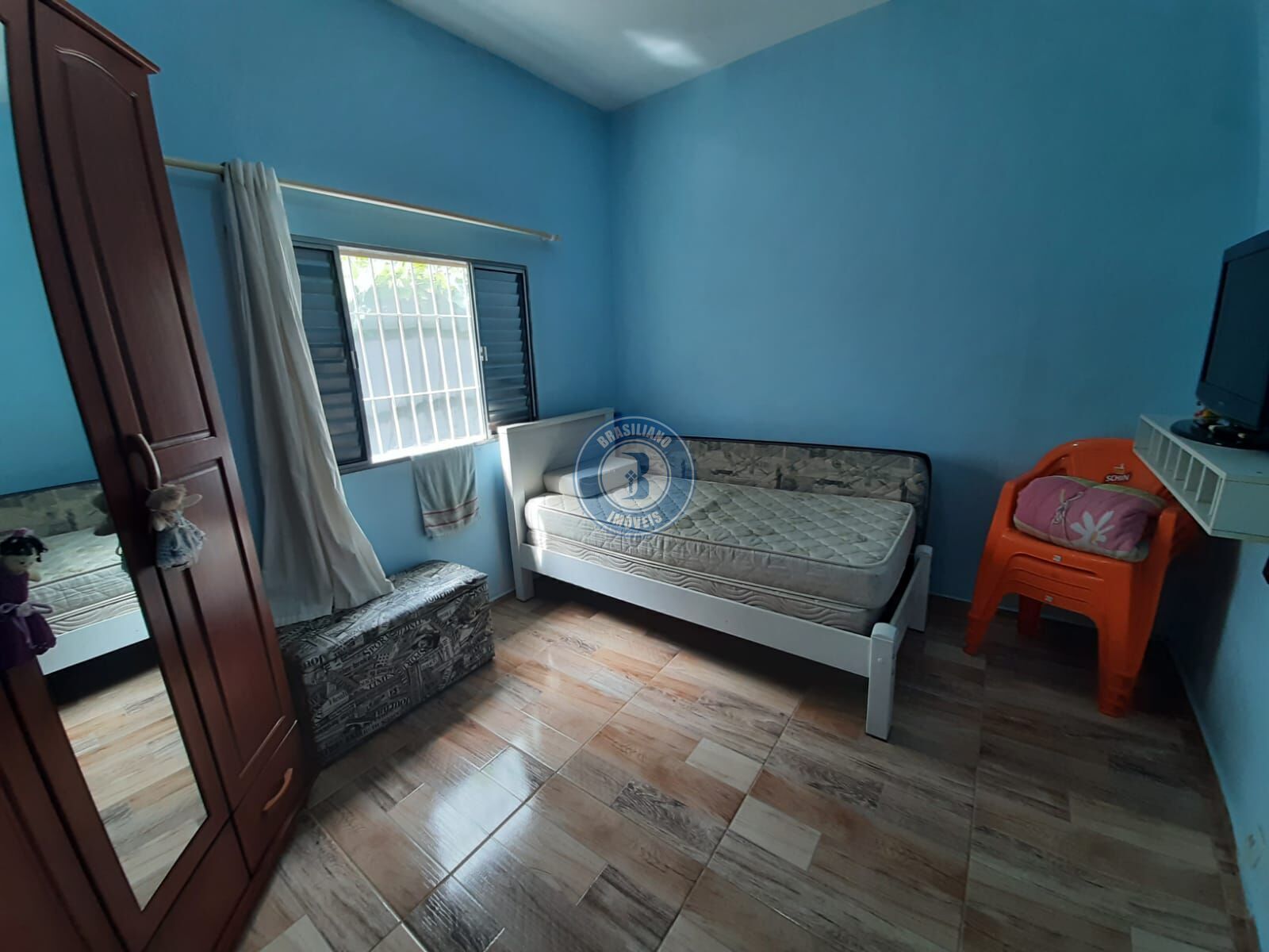 São dois dormitórios - sala - cozinnha - área de serviços - churrasqueira - corredor lateral -- duas vagas de garagem coberta.
